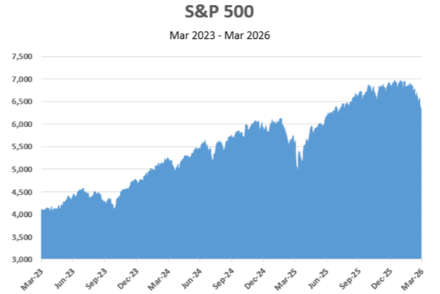 Despite many sources of concern and volatility, the market has only suffered modest declines so far. The economy and investor sentiment has remained remarkably resilient in the face of uncertainty about trade policy, war with Iran, and a multitude of policy changes. The hope among investors is that the conflict with Iran will be short‐lived, and that once the situation has stabilized, the market and economy can continue on an upward path.